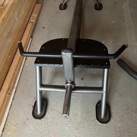 Kjekk nedtrekk til å henge i taket for å ikke bruke så mye gulvplass. Benytter vektskiver som belastning.