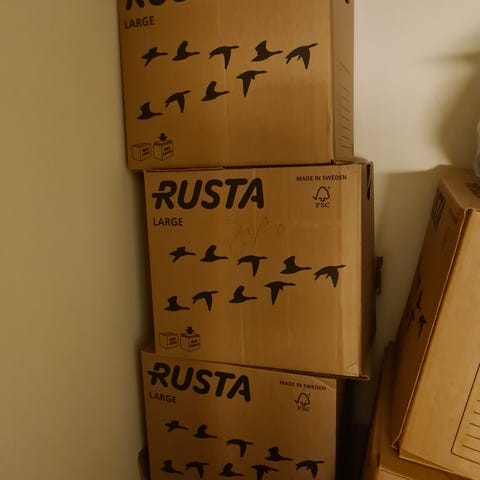 Gies bort da vi ikke bruker de lenger. Lettere å sortere hvis du har lang vei til søpla. Str. 47 L.