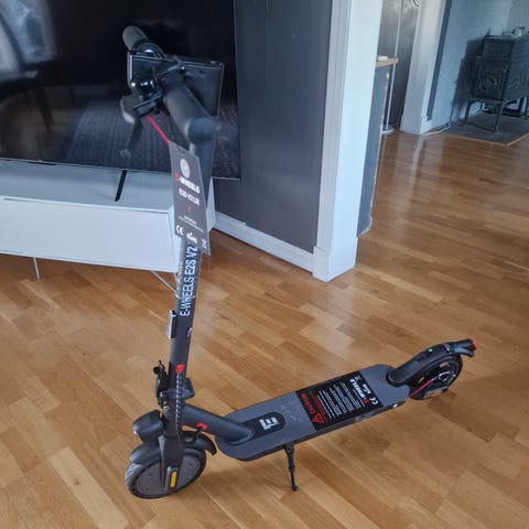 E-WHEELS e2s v2 Lr. Fungerer som den skal kjører 20 km/t og har en rekkevidde på opptil 35 km. Den har pungteringsfrie dekk. Lader følger med