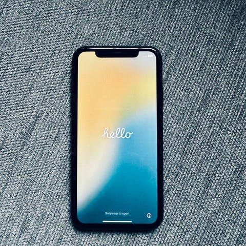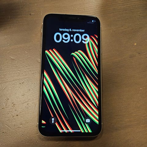 Apple iPhone XR med 64 GB lagringskapasitet. Telefonen har en gul farge og leveres i original emballasje. Modellen er kjent for sin skjermstørrelse på 6,1 tommer og har en bakside i glassmateriale.