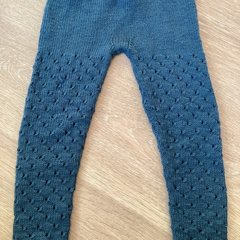 Hjemmestrikket ny blondetights, str. 12-18 mnd, snor i livet. høyere bag, strikket i tynn merino fra Knitting for Olive, farge snefnugg.
