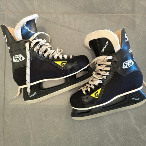 Dette er kvalitets skøyter fra Graf, kjent for solid byggekvalitet, god passform og lang levetid. Klassisk modell som fortsatt er ettertraktet blant spillere som foretrekker tradisjonell konstruksjon fremfor dagens mer minimalistiske løsninger.