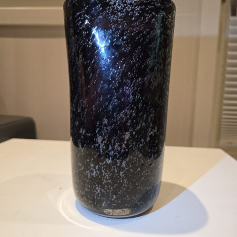 Brun glassbolle med en diameter på 20 cm. Egnet til oppbevaring eller dekorasjon, vase laget av tre og blommster vase