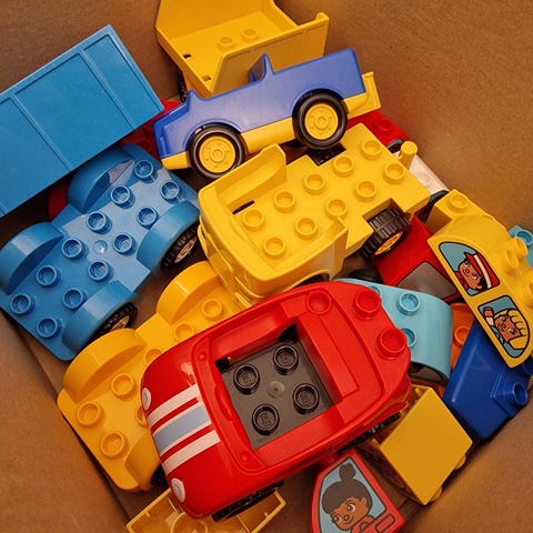 Her er en mulighet til å erstatte de manglende brikkene dine! Duplo er kjøpt brukt og har blitt vasket.