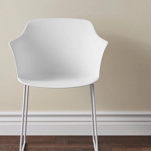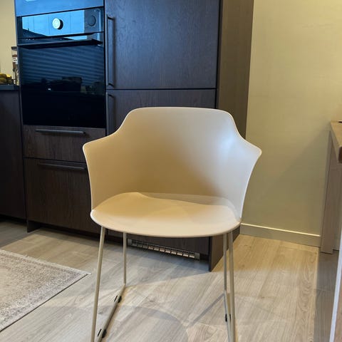 Stol Gardeon fra Ellos Home selges. Stol av formstøpt plast med UV-beskyttelse. Stamme i pulverlakkert metall. Kan tørkes av. Høyde 82 cm, bredde 59 cm, dybde 49 cm. Sittedybde 45 cm, sittehøyde 45 cm. Høyde fra gulv til armlene 68 cm. Maks. vektbelastning 120 kg