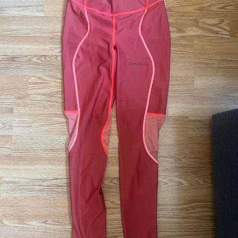 Tights/leggings fra Johaug i mørk blå og lys rosa. Kun brukt en gang, som nye. Høyt, elastisk liv.