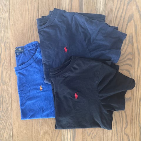 Ralph Lauren Polo T-skjorte i størrelse 110, to stk. mørke blå og lyse blå farge.