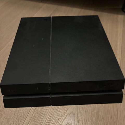 PlayStation 4 500GB til salgs. Det er modell CUH-1216A fra 2017. Den ble kjøpt brukt for 1800 kroner i Januar 2023. Da virket ikke på-knappen på konsollen, men det har ikke vært noe problem fordi den slås på fra kontrollen.