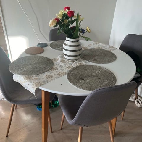 Rundt spisebord fire stoler