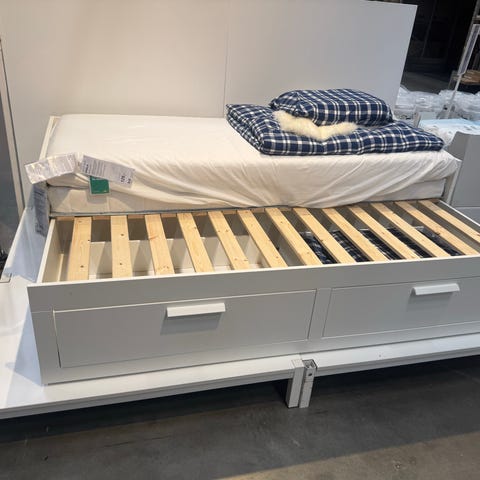 Pent brukt enkeltseng fra IKEA selges med overmadrass. Ingen synlige bruksmerker. Må hentes på Langhus.