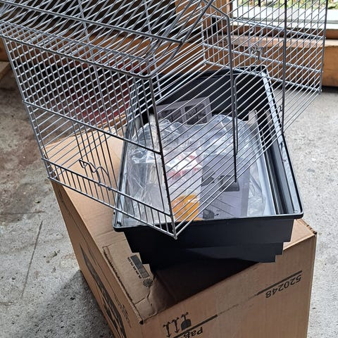 Fuglebur selges som det står. Ikke hvert brukt på mange år. To matskåler vann og speil. Brukt til undulat