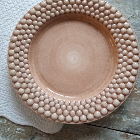 Mateus Oval Tallerken med dekorative bobler rundt kanten. Tallerkenen har en oval form og kommer i farger som turkis og blå. Egnet for servering av mat og presentasjon.