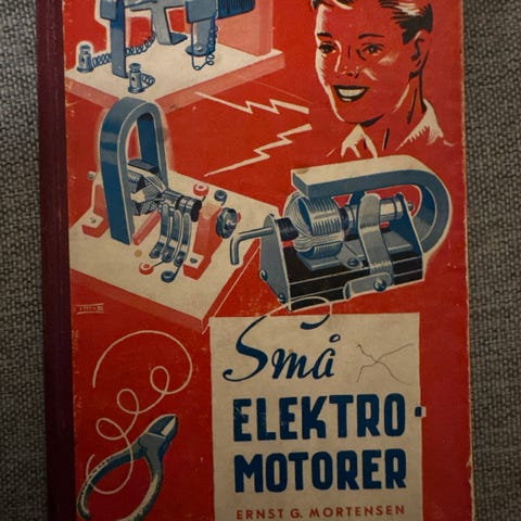 Boken dekker grunnleggende informasjon om små elektromotorer, inkludert illustrasjoner og instruksjoner. Utgitt i Oslo i 1947.