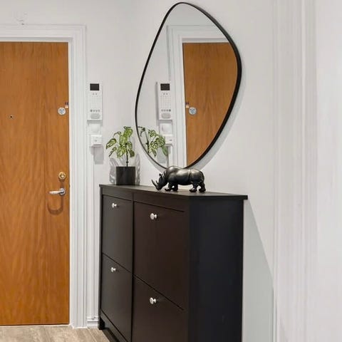 Ubrukt entre-møbel med skjult oppheng av klær og lukket skap i bunn