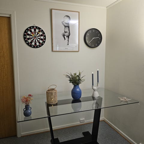 Bordet fungerer godt som spisebord, arbeidsbord, ekstrabord…