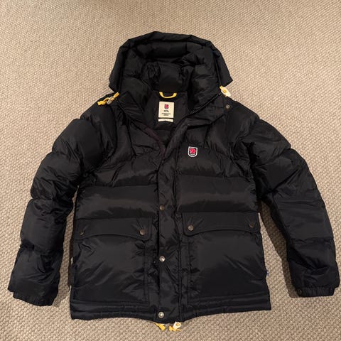 Fjällräven Expedition Series vinterjakke i størrelse S for menn. Jakken er grå og laget av dun, som gir god isolasjon og varme. Egnet for kalde vinterforhold. Selges pga lite brukt