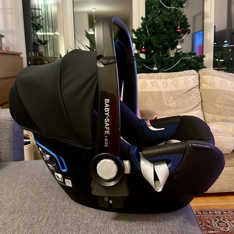 BRIO Bilsete til baby med størrelse 13. Setet er designet for barn og har standard sikkerhetsmerking i henhold til ECE R44/04. Farge svart.