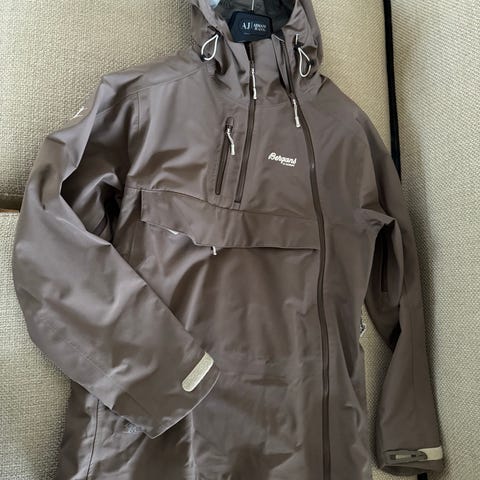 Bergans jakke i brun farge, størrelse M for herre. Har fått ny fra Norrøna så trenger ikke denne lenger. Har litt misfarging rundt halsen men ellers fin