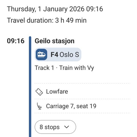 Enveisbillett Gol - Oslo med nummerert plass. Sender kode ved kjøp😊 avgang kl 0958. Kjøpt for 579
