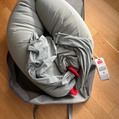 Pent brukt gravidpute med trekk (rosa) og oppbevaringspose. Mangler den ene hvite til å ha på enden, men jeg har bare knyttet trekket i stedet da det var mer komfortabelt.