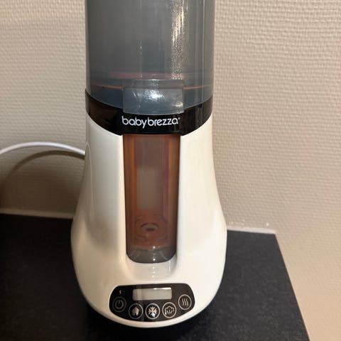 Baby Brezza Melkeflaskevarmer med elektrisk oppvarming, designet for å varme melkeflasker raskt og jevnt. Enheten har et kompakt og brukervennlig design, egnet for daglig bruk.