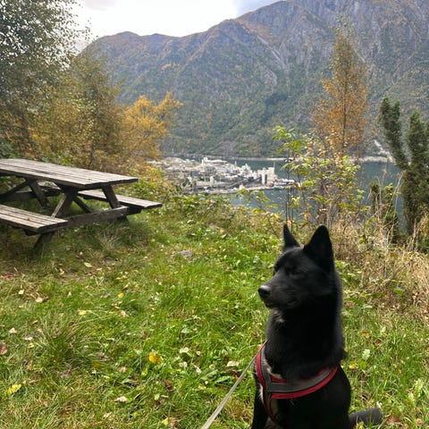 Han er en leken hund som tror han er liten enda, han elsker å gå turer, men trenger mer trening på dressur, han kan det grunnleggende:)