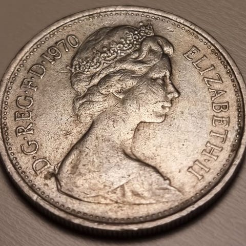 Blindrull/Myntrull England 25 new pence Elizabeth II enten 1972 eller 1980