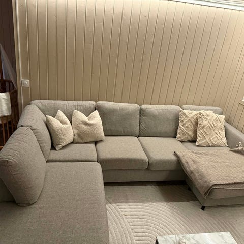 Skadefri hjørnesofa selges, kun grundig rens trengs