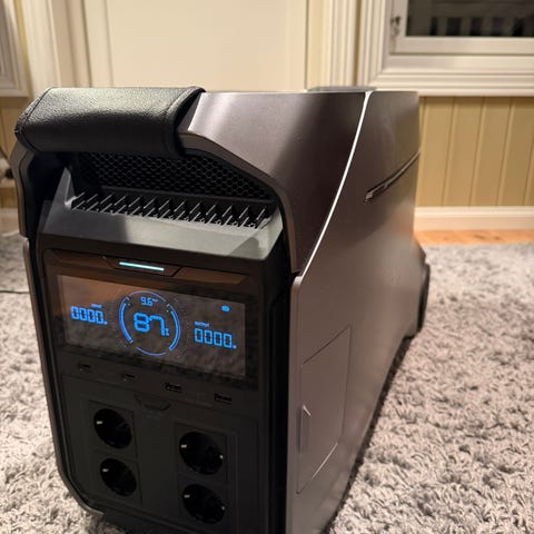 Jeg selger en Ecoflow Delta Pro 3600W, som jeg kjøpte NY i august, brukte i 3 uker mens jeg var på camping, og som er bekreftet å ha gjennomgått nøyaktig to fulle ladingssykluser.