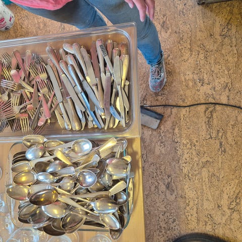 Knapt brukt sølvplett bestikk til frokostbordets kjøttpålegg og småretter selger samlet veldig rimelig.