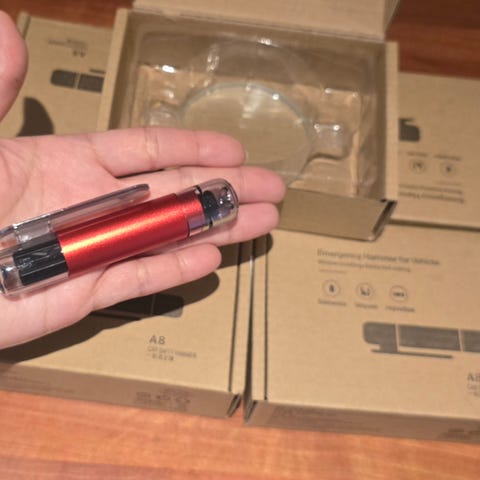 Safe Pro X nødverktøy for knusing av bilvinduer i nødsituasjoner, samt beltekutter, i ett og samme verktøyet. Sett med 2 stk. Testglass for knusing følger også med.