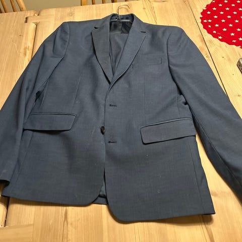 Selger en pent brukt guttedress – kun jakke (uten bukse) i mørk koksblå farge.