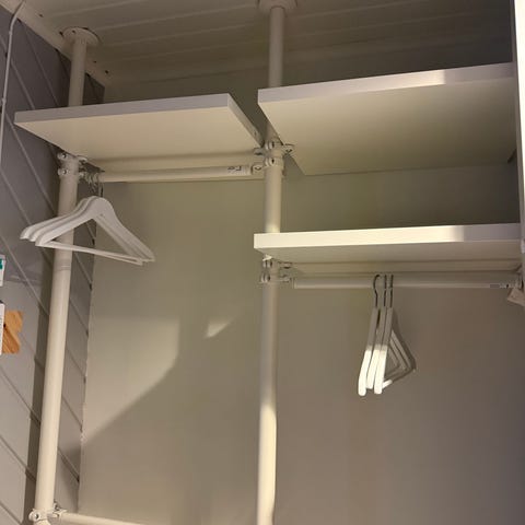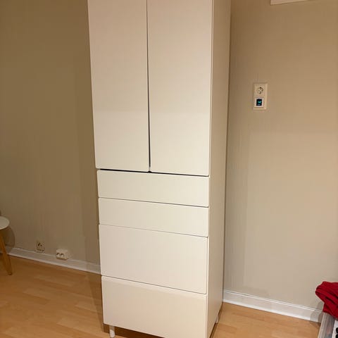 Tekst fra IKEA sin nettside: Denne garderoben tar lite plass, men er stor nok til alle de endeløse stilendringene – fra babyår til tenåringer. Den har også knagger der barnet ditt kan nå og henge klærne sine selv. Ny pris kr 2 505,-