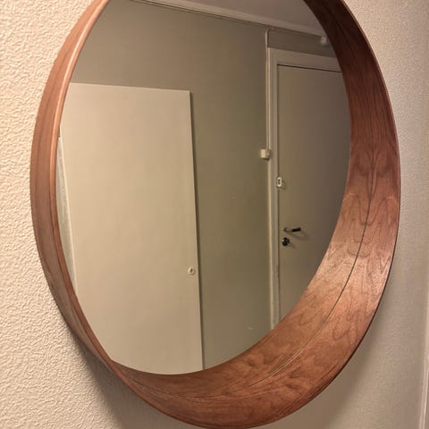 Pent brukt IKEA Stockholm speil i valnøttfiner. Diameter 60cm