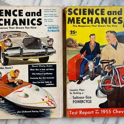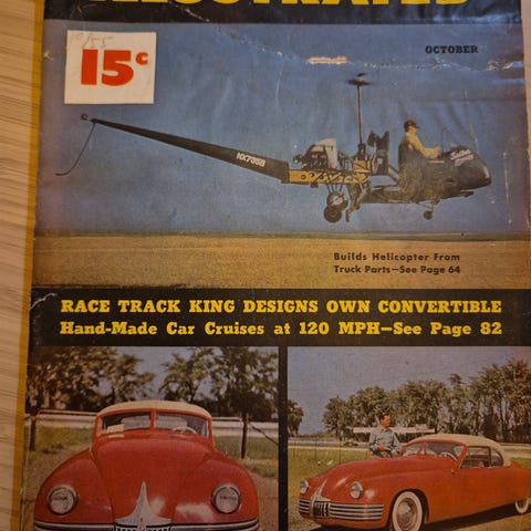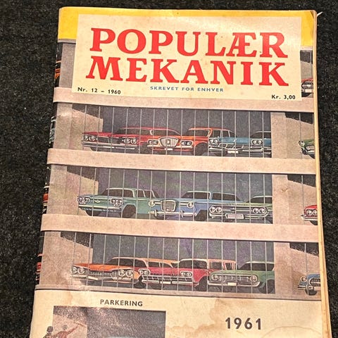 Popular Mechanics magasin med innhold om teknologi, mekanikk og bilvedlikehold. Inneholder artikler, annonser og illustrasjoner relatert til mekaniske prosjekter og produkter.