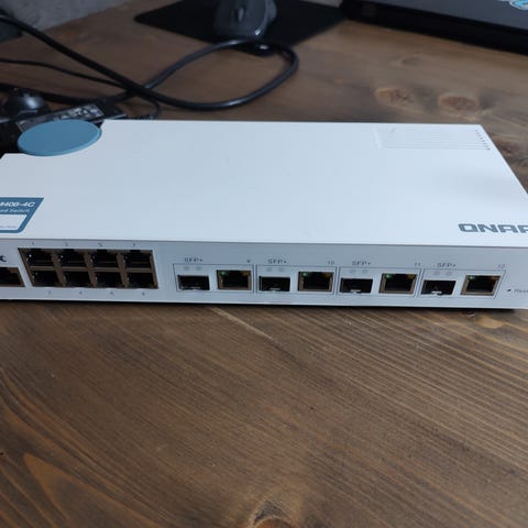 Switch med flere PoE ethernet-porter for tilkobling av nettverksenheter. Enheten har flere porter for kablet nettverkstilkobling med PoE.