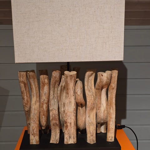 Rustikk lampe fra Home&Cottage. Lampeskjerm i grønn velour er kjøpt separat og kan lett byttes til en annen. Selges helst samlet.