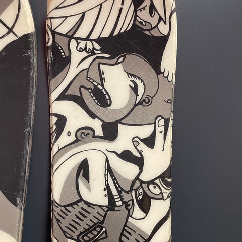 Har synlige merker/skader på kanten, se bilder. Fortsatt mye bruk igjen.