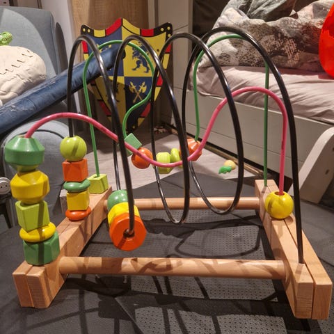 Selger en hit fra huset! Kulebane i flere farger med 3 baller. Designet for små barn for å utvikle motoriske ferdigheter og koordinasjon.