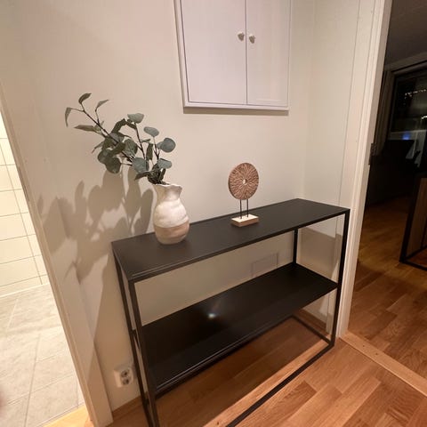 Skjenk fra IKEA, malt hvit. Merker på toppen, kan males over. Selges billig pga flytting.