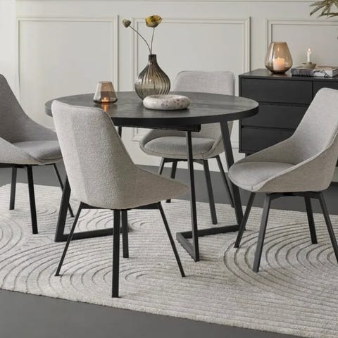 Rundt spisebord m/ 4 ilegsplater + stoler