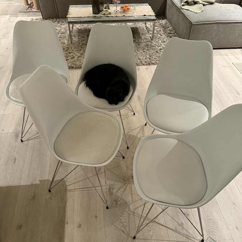 Høyde bord 74 , diameter plate 90cm. Det er mulig å legge ilegges plate i bordet med det har jeg ikke. Det er et merke fra prislapp på bordplaten som nok kan lett fjernes . Stolene er uten merker og veldig gode å sitte i.