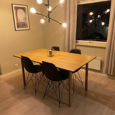 Spisebord med 2 ekstra plater, samlet lengde 290 cm med begge i bruk.