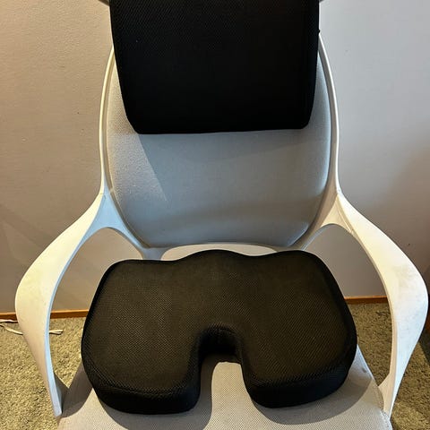 Selger en ergonomisk sittepute fra Din Holdning, formet for å avlaste rygg, korsrygg og halebeinet. Dette er en skikkelig “game changer” for deg som sitter mye – på kontor, i bil, hjemme eller gaming.