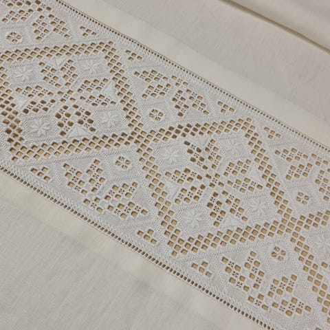 Borden er sydd på lin, og forkle er montert med kvalitetsstoff i bomull fra Krivi vev.