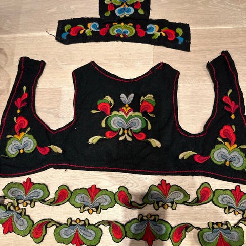 Helt nytt forkle til Hardangerbunad. Nydelig hardangersøm på forkleborden.