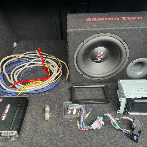 Ground Zero subwooferkasse med fire høyttalere