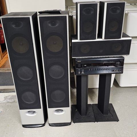 Intono 5.1 hjemmekinoanlegg med Onkyo hjemmekinoreceiver. Ledninger til sub og høyttalere kan følge med. Har kun brukt gulvstående fronter og forsterker. Har kjøpt resten brukt, men aldri blitt koblet opp og nå har jeg gått til innkjøp av nytt hjemmekinoanlegg