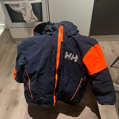 Helly Hansen barneklær i størrelse 86, unisex, i blå farge. Settet inkluderer jakke og bukse med utendørs egenskaper.