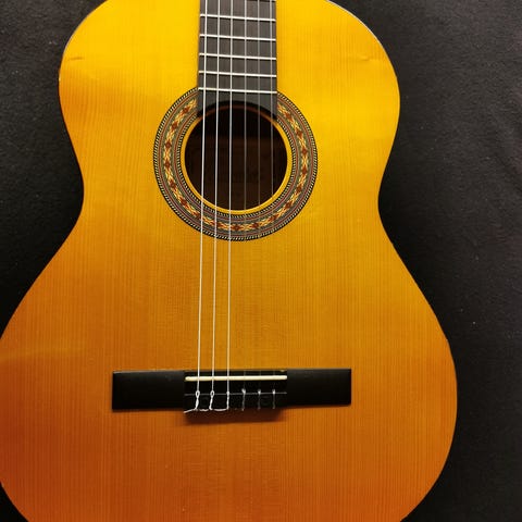 Yamaha med nylonstrenger kjøpt tidligere i år for et kortvarig prosjekt selges for samme pris. Men du får med en helt by bag (den sorte) pluss ekstra strengesett, strengesveiv og en nirvana gitarbok.